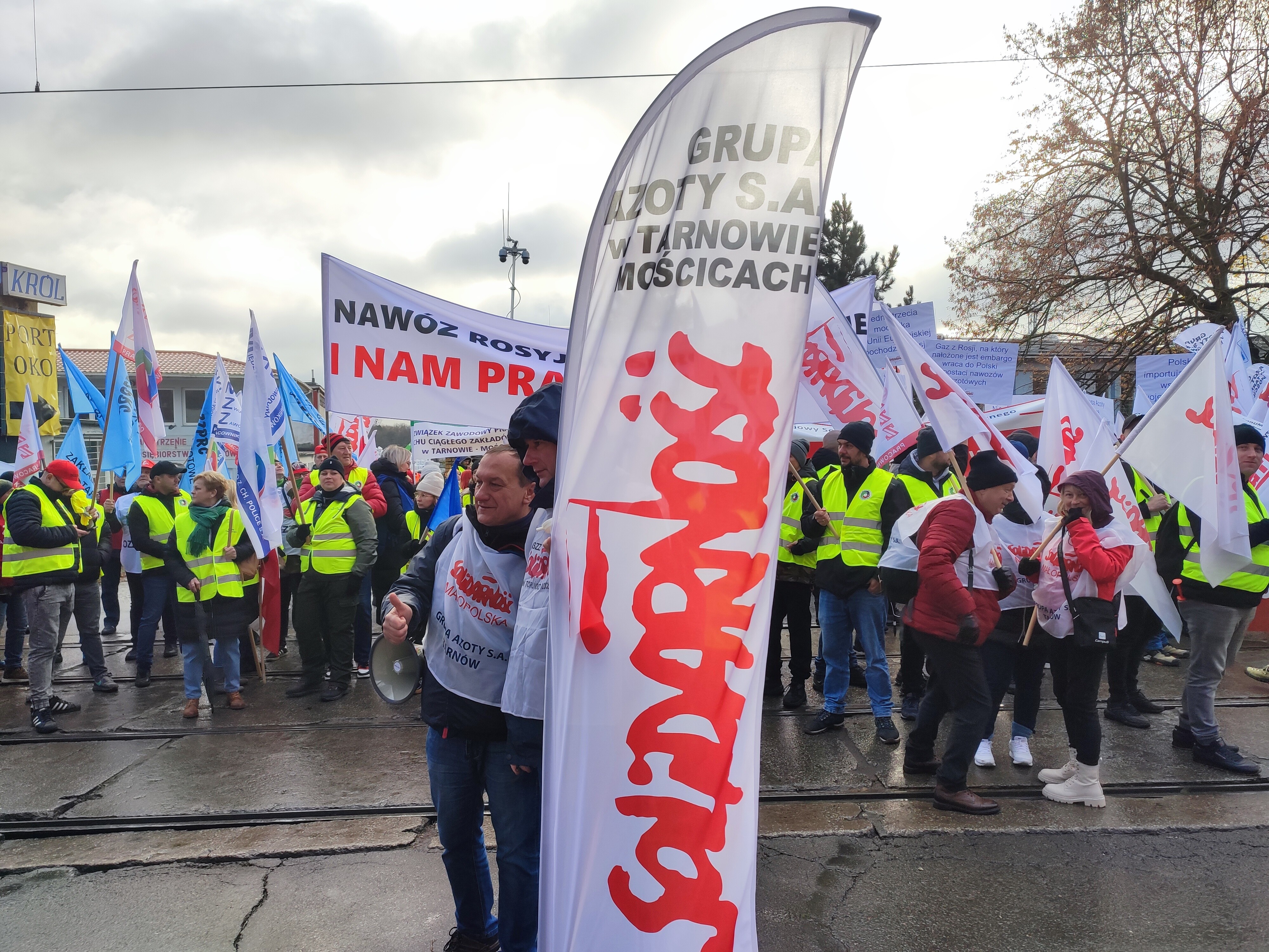 W dniu 20.11.2024 została zorganizowana akcja protestacyjna na ul. Dębogórskiej w Szczecinie. Protest jest wyrażeniem naszego sprzeciwu wobec rosnącego importu tanich nawozów z Rosji i Białorusi oraz trwającego procesu likwidacji miejsc pracy w naszym regionie, w Grupie Azoty i w Grupie Azoty Zakłady Chemiczne "Police" S.A. oraz w spółkach zależnych. Brali w nim udział również pracownicy naszego Związku Zawodowego. Protest zakończył się złożeniem petycji ze swoimi postulatami skierowanych do premiera Donalda Tuska na ręce wojewody zachodniopomorskiego Adama Rudawskiego.